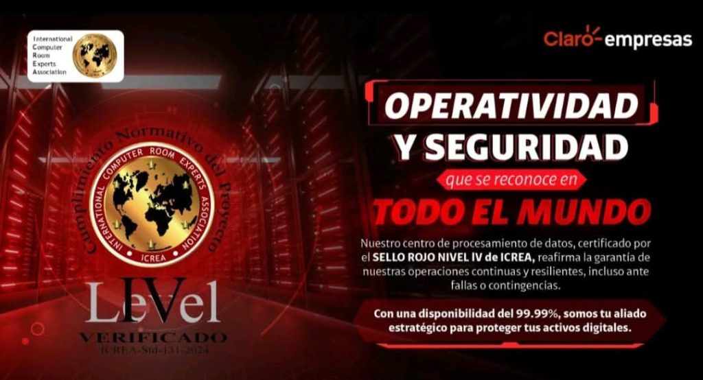 Un logro mundial! CLARO Centroamérica recibe la certificación Sello Rojo Nivel IV de ICREA. Certificación Internacional que que avala nuestra infraestructura con los más altos estándares de diseño, seguridad y disponibilidad operativa.